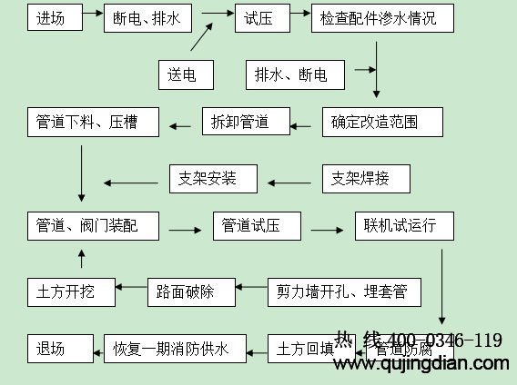 水泵房改造時將對一期工程的消火栓管網停水,屆時對一期建筑的防火安全產生一定的影響。故編制本施工方案,力求在--短的時間內更好地完成本工程的改造,降低一期建筑消防隱患。